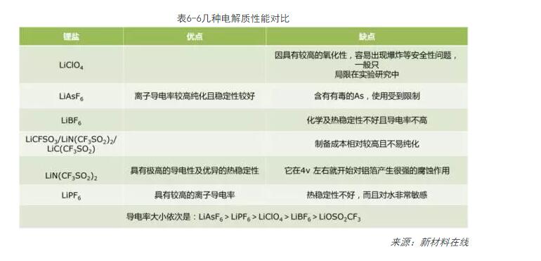 1、幾種電解質(zhì)性能對比