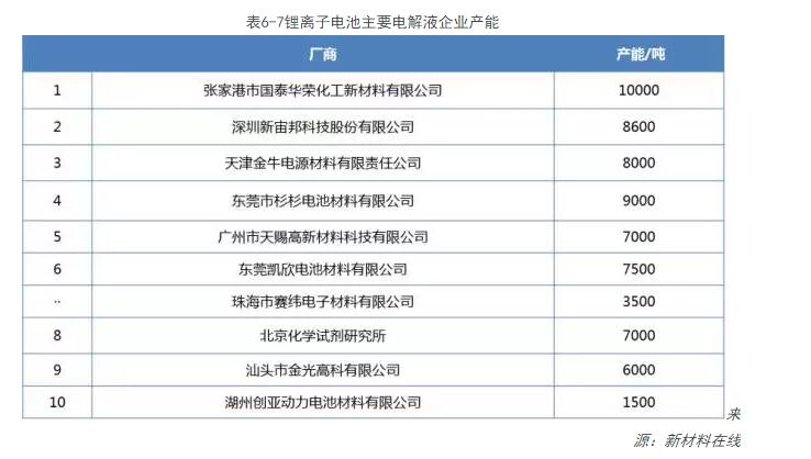 3、鋰離子電池主要電解液企業(yè)產(chǎn)能